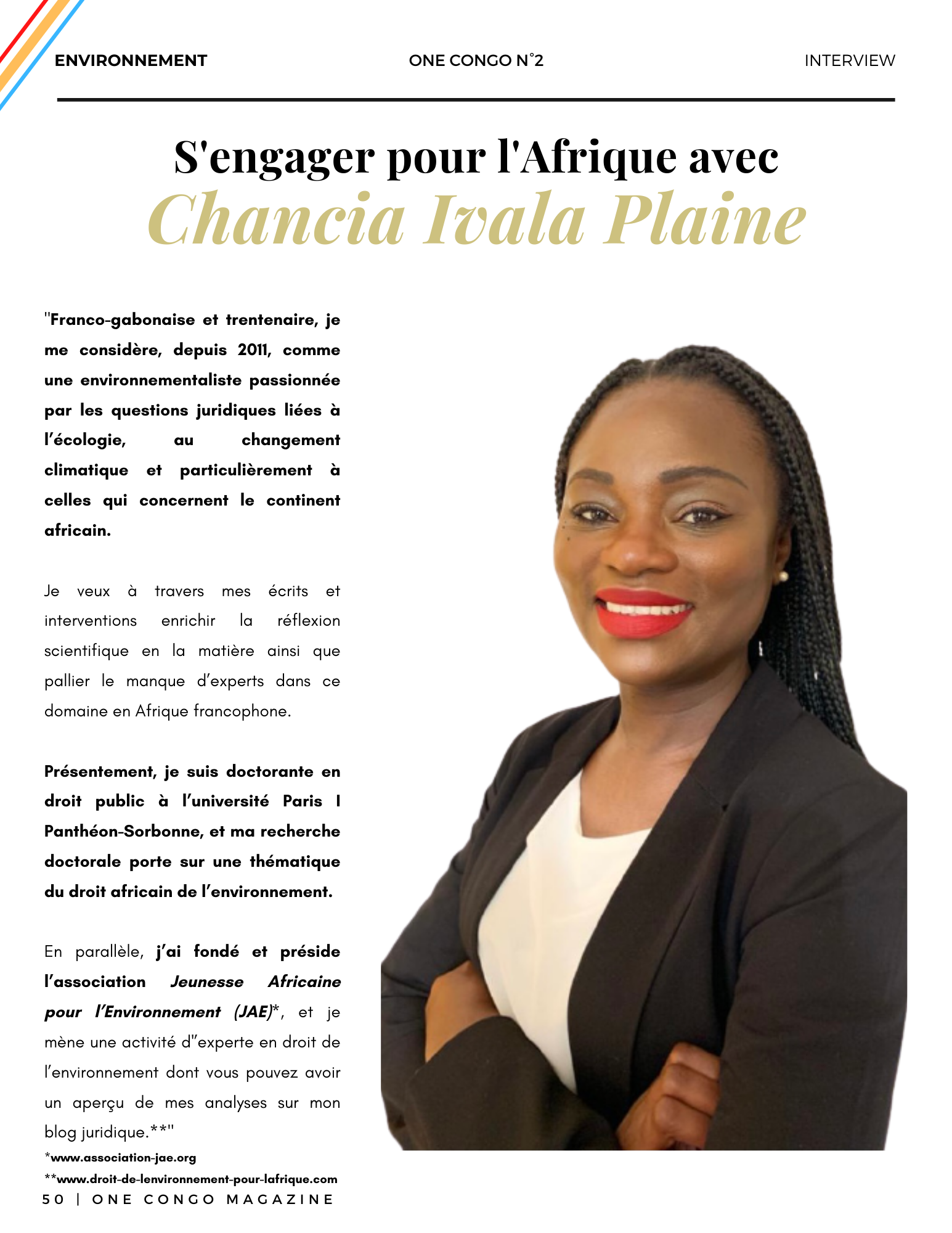 Je tiens à remercier toute l’équipe de One Congo Magazine de m’avoir permis de partager avec leurs lecteurs mon engagement pour la problématique environnementale en Afrique.
