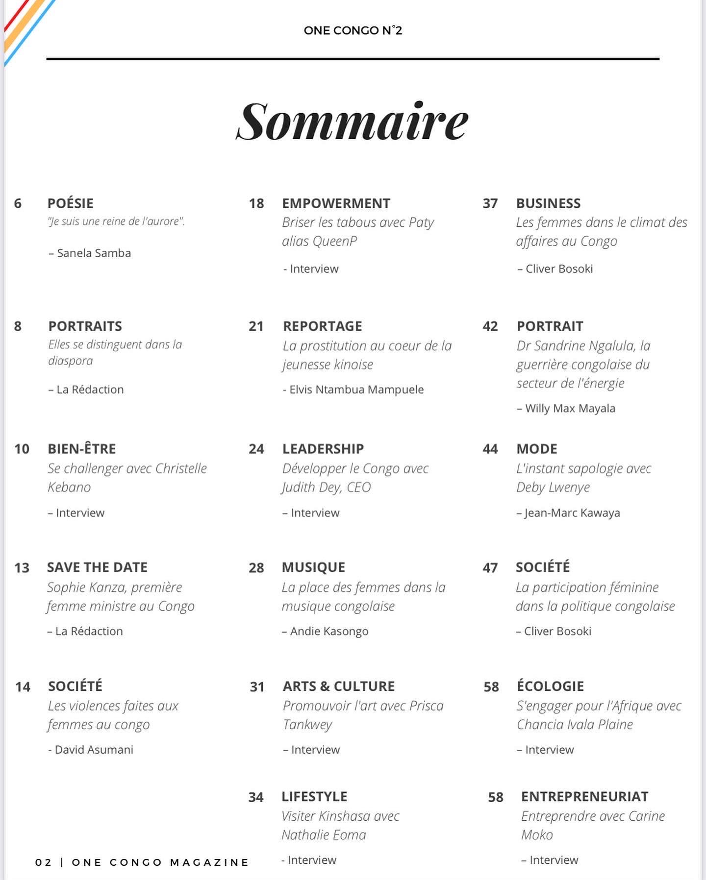 Pour lire l’interview One Congo n°2, pp. 50-52, dans le lien ci-après: https://onecongo.org/.
